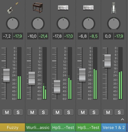 Bassinn -17,9 db. Vocal-keðjan síðan -17,9 db.